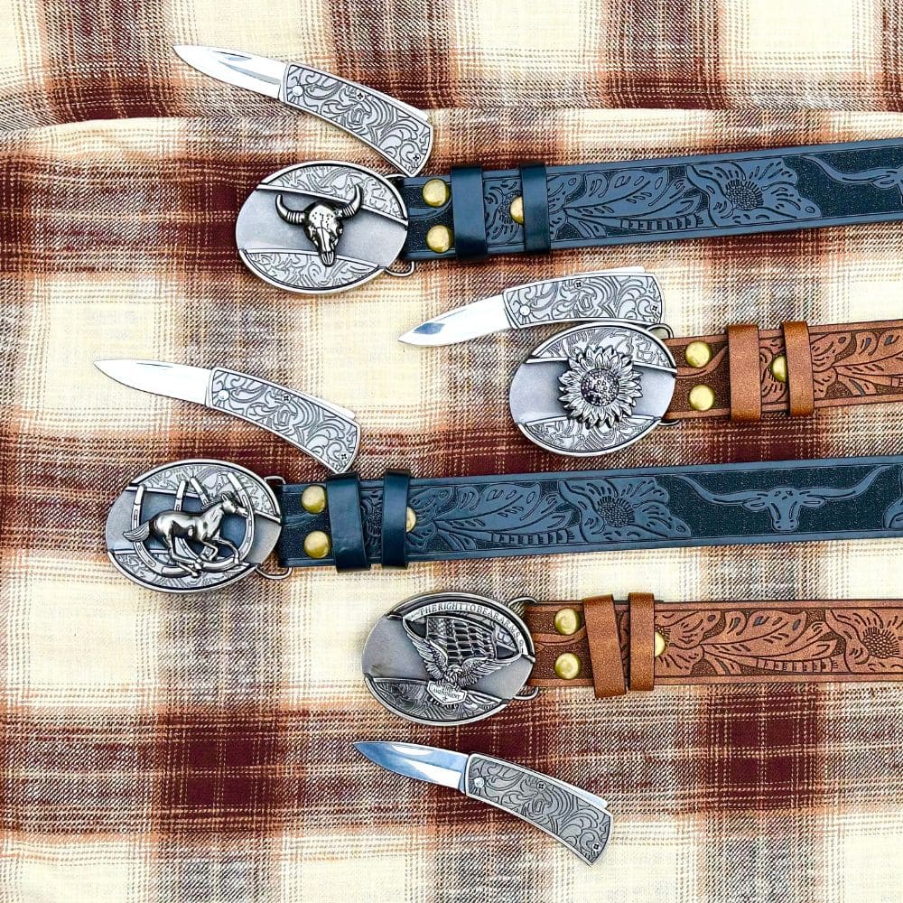 Inside the stainless steel buckle is a razor-sharp hidden knife. Easy to access, built strong, and designed to stay sharp. It’s the secret that makes this belt more than just Western style.